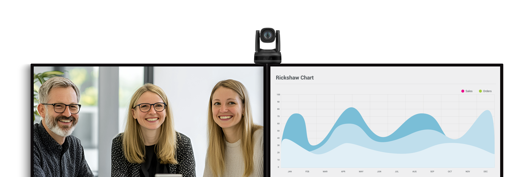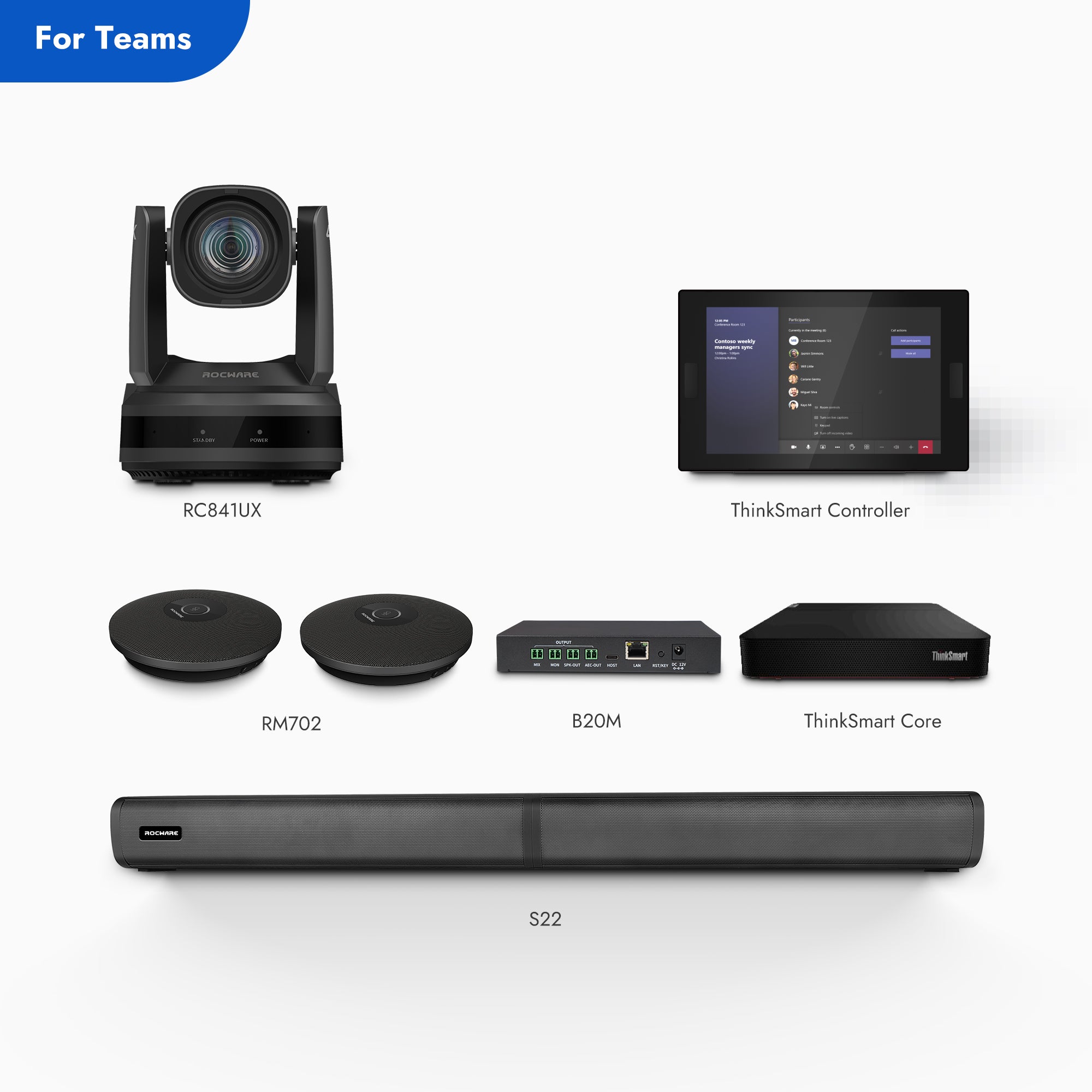 Der RC841UX liefert beeindruckende 4K-Videos und kristallklaren Ton, um Ihre Zoom- oder Microsoft Teams-Meetings zu verbessern. In Kombination mit dem RT13 dynamischen Touchscreen bietet er nahtlose Steuerung und ein verbessertes Meeting-Erlebnis in mittelgroßen bis großen Räumen.