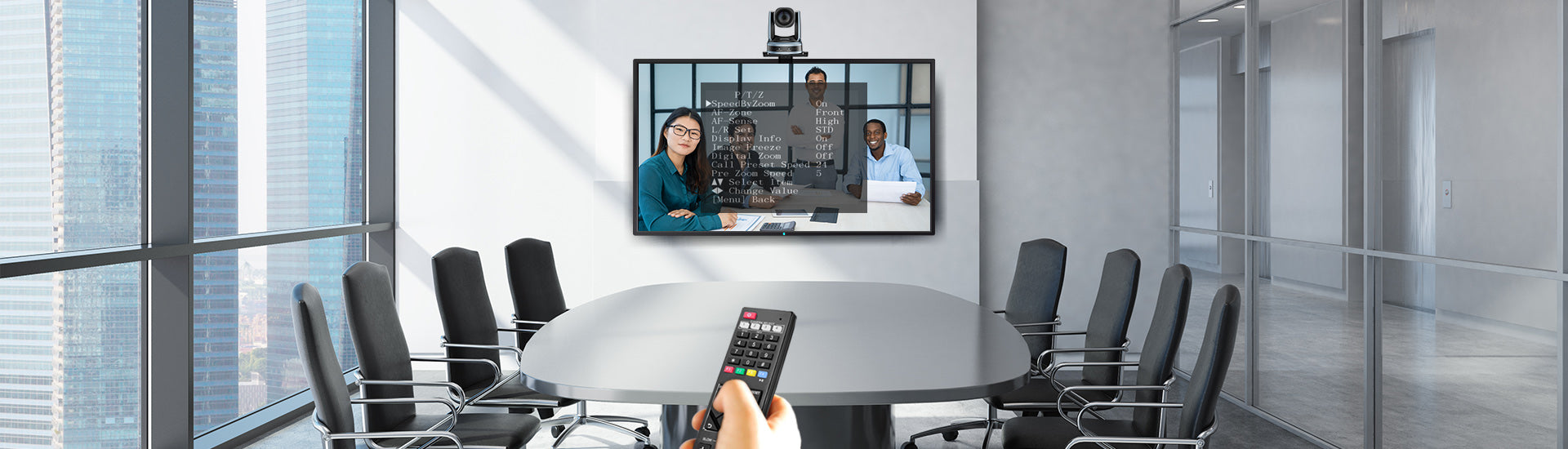 Eine hochauflösende Videokonferenzkamera, die speziell für mittelgroße bis große Konferenzszenarien entwickelt wurde und eine brandneue Generation von HD COMS Hochleistungssensoren mitbringt, die eine Bildqualität von 1920x1080 Auflösung und eine Bildwiederholrate von bis zu 60 Bildern pro Sekunde liefern, um ein verfeinertes und flüssiges Videokonferenzerlebnis zu bieten.
