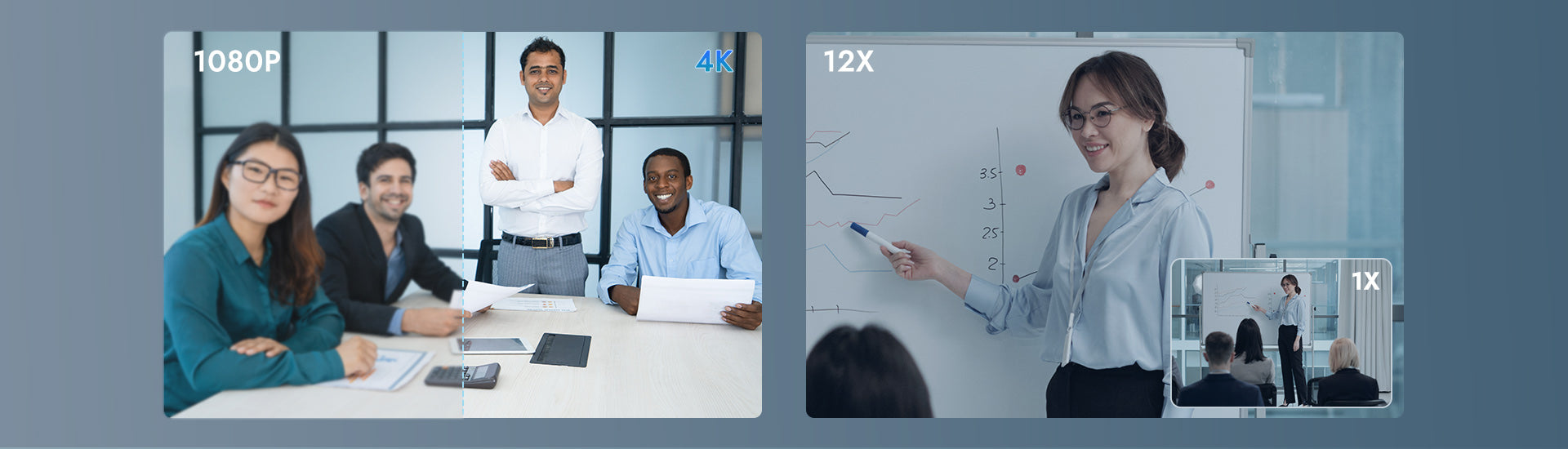 Ausgestattet mit einem 80,8° Weitwinkelobjektiv verfügt diese Kamera über einen 12-fachen optischen Zoom und einen 16-fachen digitalen Zoom, wodurch Details sowohl in der Nähe als auch in der Ferne im Konferenzraum klar erfasst werden können, ohne Verzerrungen an den Bildrändern.