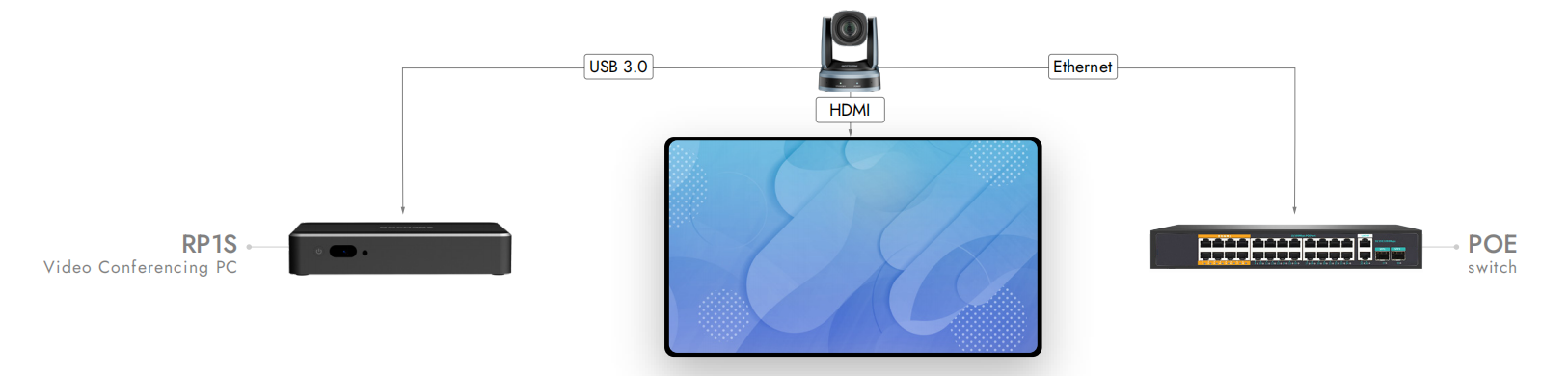 Diese Kamera unterstützt HDMI-, USB3.0- und Netzwerkschnittstellen, um gleichzeitig 4K-Ultra-HD-Videostreams auszugeben, wodurch sie mit verschiedenen Konferenzendgeräten kompatibel ist, die unterschiedliche Schnittstellenanforderungen haben.
