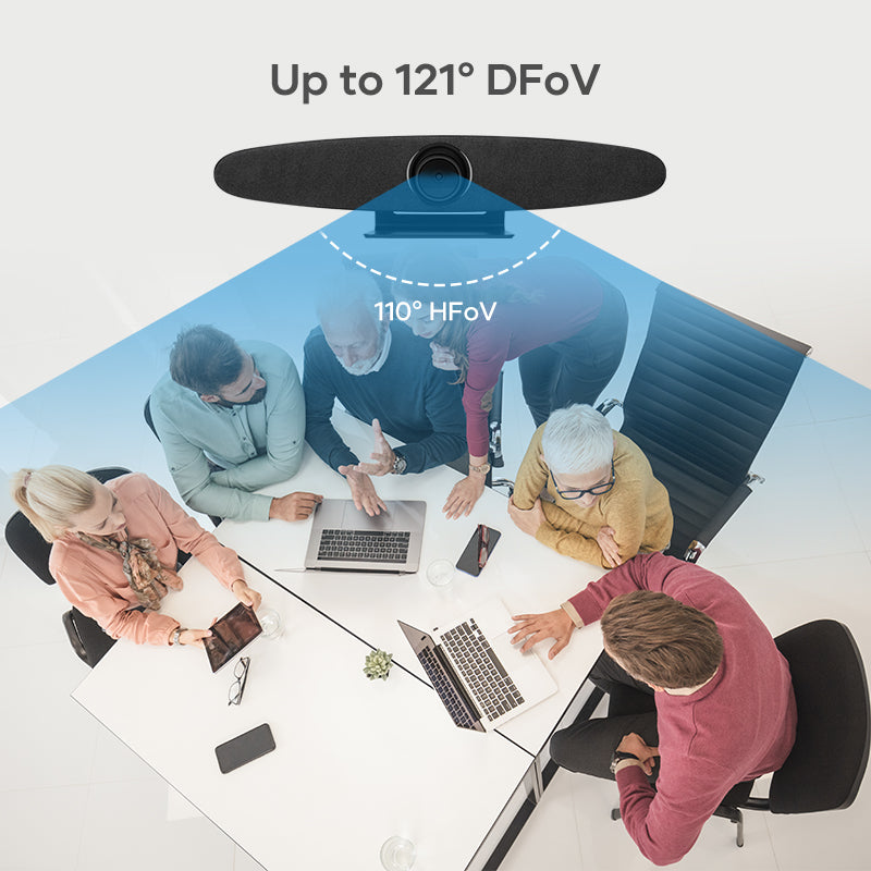 121° wide field of view (110° horizontal field of view), built-in PTZ (pan and tilt ±15°), making it easier for attendees to enter the conference meeting.